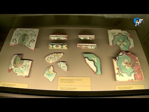 В состав выставки включены рельефные полихромные (конец XVII - XVIII вв.) и гладкие расписные (XVIII - начало XIX в.) изразцы, как уже известные по более ранним находкам на Владычном дворе, так и впервые обнаруженные на территории архиерейской резиденции. Эта типологически и стилистически неоднородная керамика, относящаяся к нескольким этапам развития изразцового декора, демонстрирует разные художественные особенности и технологические приемы. Стеновые и поясовые изразцы, перемычки, тяги, колонки, представляют практически все элементы разнообразных печных наборов.